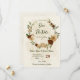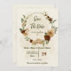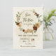 Beautiful earth tone fall wedding save the date invitation featuring terracotta, beige and cream flowers with green leaves .