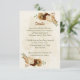 Beautiful earth tone fall wedding reception details enclosure card featuring terracotta, beige and cream flowers with green leaves .