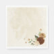 Beautiful earth tone fall paper napkin featuring terracotta, beige and cream flowers with green leaves .