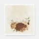 Beautiful earth tone fall paper napkin featuring terracotta, beige and cream flowers with green leaves .