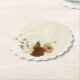 Beautiful earth tone fall paper coaster featuring terracotta, beige and cream flowers with green leaves .