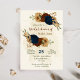 Beautiful earth tone fall bridal shower invitations featuring terracotta, beige and navy blue flowers with green leaves .