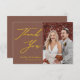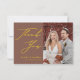 Terracotta Elegant Gold Script Modern Photo Wedding Thank You Card. Express how thankful you are to your friends and family who made your wedding an extra special with this beautiful wedding photo thank you card. All the texts are pre-arranged for you to personalise easily and quickly with your own words.