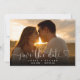 This elegant heart script photo save the date card features your photo and a script save the date above your names, date and venue. The reverse features an additional photo and message on a terracotta background. Designed by Thisisnotme©
