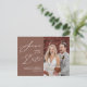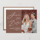 Terracotta Elegant Script Modern Photo Simple Wedding Save The Date Announcement Postcard. Let your family, friends and colleagues know that you have set a date for your wedding celebration with this elegant, stylish and modern wedding save the date invitation card. All the texts are pre-arranged for you to personalise easily and quickly with your own details.
