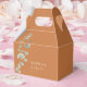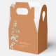 This Terracotta Eucalyptus Deco wedding gable favour box provides a minimalist boho, and rustic country, western, or desert theme. The simple sage green eucalyptus succulent foliage compliments the terracotta autumn background, while the art deco type combined with the botanical greenery and burnt orange backdrop creates a versatility to combine with other coloured products from this collection. These colour combinations are sure to wow the guests invited to and attending your marriage celebration.