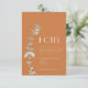 This Terracotta Eucalyptus Deco wedding hotel enclosure card provides a minimalist boho, and rustic country, western, or desert theme. The simple sage green eucalyptus succulent foliage compliments the terracotta autumn background, while the art deco type combined with the botanical greenery and burnt orange backdrop creates a versatility to combine with other coloured products from this collection. These colour combinations are sure to wow the guests invited to and attending your marriage celebration.