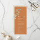 This Terracotta Eucalyptus Deco wedding program provides a minimalist boho, and rustic country, western, or desert theme. The simple sage green eucalyptus succulent foliage compliments the terracotta autumn background, while the art deco type combined with the botanical greenery and burnt orange backdrop creates a versatility to combine with other coloured products from this collection. These colour combinations are sure to wow the guests invited to and attending your marriage celebration.