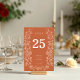 Terracotta Fall Floral Wedding Table Number. This table number card has a soft, elegant style with a white floral frame that feels timeless. Delicate white floral illustrations along the sides add a touch of whimsy and nature-inspired charm. The layout is clean and organised, using a centred alignment and clear spacing to create a refined look. Perfect for a fall theme. Overall, the design feels romantic yet understated, perfect for a modern or traditional wedding.