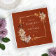 Terracotta Fall Wedding Napkins. Add a refined autumn touch to your reception with these wedding napkins. They feature a delicate fall leaves wreath in hand-painted watercolor shades of burnt orange, terracotta, copper, and rust, accented by cream and beige dahlias. Set against a warm terracotta background, these napkins seamlessly tie your table décor to your wedding theme. Impress your guests with thoughtful details—customise your napkins today.
