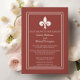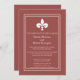 Enchant your guests with this Terracotta Fleur de Lis Wedding Invitation, designed for French-inspired wedding stationery. This exquisite invitation showcases a refined fleur de lis motif framed by a sophisticated double line frame, blending French aesthetic with elegant script and modern typography. Perfect for the bride and groom, its elegant layout and modern design highlight your wedding details with timeless charm. This fully customisable invitation is ideal for couples seeking a romantic, French-inspired celebration with earth tones. Perfect for couples having a French inspired theme wedding.