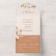 Make sending the invitation and RSVP easy while amazing your guests with your beautiful boho terracotta All In One wedding invitation. This design features white peonies, hortensia, and golden leaves on a dusty rose watercolor background. Find matching products and sets in Boho Terracotta Wedding Collection.