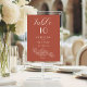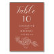 This Terracotta Floral Elegant Wedding Reception Table Number showcases a delicate magnolia flower in terracotta on an ivory background, with modern typography and script calligraphy. It is fully customisable with the table number, couple's names, wedding date, and optional guest list on the back. The formal design and wording will add a touch of elegance to your wedding celebration.