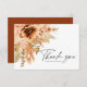 With an elegant design that seamlessly combines modern trends and timeless charm of nature, this dazzling Terracotta Floral Fall Wedding Thank You Card is the perfect way to express gratitude to your loved ones. The card is adorned with floral watercolor accents, reminiscent of fall, in warm earthy tones that add to its inviting appeal. Inspired by the season's colour palette, this design artfully blends terracotta, burnt orange, and muted browns to create a visually captivating thank you note. Stylish and trendy, this card perfectly complements any wedding theme, including a rustic wedding, autumn wedding, boho wedding, or country wedding. Use the Design Tool to customise the text font, colour, size and placement to your liking. Combine with other items from the Burnt Orange Terracotta Boho Wedding invitations collection.