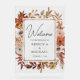 Amaze your guests with this elegant wedding welcome sign featuring beautiful earthy flowers and dried leaves.
