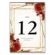Accent the tables are your wedding reception with these elegant table number cards. The design features beautiful dark terracotta coloured roses accented with a faux gold glitter frame. This invitation is perfect for a fall wedding.