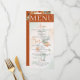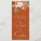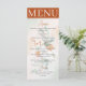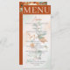 Gorgeous modern wedding menu with terracotta floral accents and designs that's easy to update. One side holds your food options, the other holds a personal message and your names.