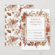 Elegant wedding RSVP card featuring beautiful earthy flowers and dried leaves.