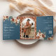 Terracotta Floral Wildflower Dusty Blue Wedding Tri-Fold Invitation
