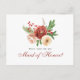 Elegant Terracotta Blush Pink White Floral Christmas Pine Bough Foliage Wedding Will You Be My Maid of Honour Postcard. All the texts are pre-arranged for you to personalise easily and quickly with your own details.
