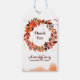 This design is the perfect addition to wedding gift boxes or guest boxes. It is made in a delicate watercolor style and features a floral wreath in warm autumn colours. Red, pink and orange flowers are intertwined with leaves to create an exquisite and romantic composition. Small details such as paint drops and natural shades add an artistic look and elegance to the design.