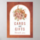 Terracotta flowers pumpkins cards and gifts wedding poster. This beautiful wedding design features an arch frame on terracotta stained background. In the frame there is your text, a bouquet terracotta watercolor flowers and pumpkins.