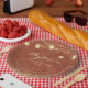 Rustic and elegant terracotta bridal shower paper plates with gold glitter and string lights. Personalised with the name of the bride to be and her shower date.