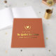 Terracotta and gold guestbook for your small business farmhouse rental with the name in gold foil beneath a hen in a greenery wreath. Farmhouse bed and breakfast guestbook in terracotta with custom gold foil text and a hen and greenery icon. Terracotta and gold foil guestbook for your rental home, rental farmhouse or rustic bed and breakfast with custom gold foil text and a hen inside a wreath.
