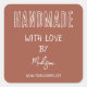 Customisable modern minimalist handmade by stickers. Features modern white typography on a modern terracotta orange background. Add your website address or social media handle to promote your business.