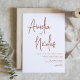 Invite guests to your event with this minimalist wedding invitation. It features a handwritten script and simple typography in terracotta. Personalise this boho wedding invitation by adding your own wedding details. This terracotta wedding invitation is perfect for any wedding theme or season.