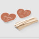 A simple but elegant heart shaped wedding program fan. The background is terracotta (Reddish brown), the text is white. The titles and the names (and the initials) of the bride and groom are written in an elegant calligraphic script, the rest in caps. On the back, it has on the left side the wedding ceremony program and, on the right side, the wedding party (with 2 different columns for the bride team and groom team). and under them a short Thank you message.