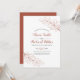 Terracotta line art branch and leaves fall wedding invitation. It displays a branch in terracotta colour on the corners and your text. The names are in script typography. The back is of solid terracotta colour.