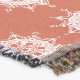 A quality printed throw has its advantages. This is a much finer weave throw than its loopier cousins, and though lighter, it is worth the investment for custom room accessorizing. The back is much prettier than the typical brown, and the fringe on the long sides very vivid, the selvage nicely done. Before photographing, I washed the throw in cold water, delicate, with a thicker woven throw the same size. On tumble dry low, this throw was dry in half the time as the other. This is a very practical quality if you use throws for furniture covers or to wrap up in frequently. The sleekness of the fabric makes it a great layer for accenting or protecting without the feeling of sitting on too much stuff. Perfect for napping or when you feel a light chill coming on. The color printing is beautiful and on this fabric, matched the design and color of my Photoshop image. This is an advantage for blending room fabrics and colors. The fringe on the short sides prints the colors from the design image and therefore varies from the side fringe. I streaked a white fractal line through the plaid pattern to give the illusion of weaving. This printed as crisp as an illusory thread, and put some white in the short side fringe, showing another advantage of print vs loomed- for artistic purposes, line lines, detail, and color integrity can be planned and preserved. My loomed throws have color limitations and more of a needlepoint texture. Print throws reproduce an exact image. The throw felt a little stiff straight out of the package, but this went away in the first delicate wash. Of course I searched the wash water for ink or bleeding and there was none.
