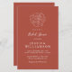 This contemporary budget bridal shower invitation features a minimalist composition, a simple floral line art drawing, and beautiful script typography in dark terracotta. This design is also available on thicker invitation paper. Easily edit the text to customise for your event. This design