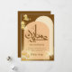 Modern aesthetic Eid card featuring warm terracotta arches and glowing golden lanterns. This trendy design combines traditional symbols with contemporary colors.