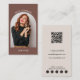A beautiful Terracotta arch design incorporating 1 of your own photos and your QR Code. This minimalist Terracotta and beige business card is ideal for anyone. A simple and professional way to introduce your business. Social media icon placeholders included in the design of this business card for you to replace with your proffered social media icons. Personalise your details to create your own unique black and white business card. A perfect photography business card.