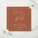 Stylish and timeless, this Terracotta Modern Minimalist Elegant Wedding Save the Date card is the perfect introduction to your celebration of love. With a simple yet unique design, this exquisite card embodies the on-trend wedding aesthetic. The calligraphy script typography adds a touch of classic and formal elegance, making it ideal for couples who want a high-end feel to their wedding stationery. The minimalistic approach ensures that your message takes centre stage, while the terracotta colour adds warmth and sophistication.