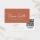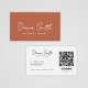 Make a lasting Impression with a modern and versatile business profile card. This fully editable, double-sided template boasts a striking minimalist design. A solid terracotta background sets the stage for your name or company name in elegant script typography. The background colour is completely customisable to suit your brand. On the back, easily incorporate all your essential contact details alongside a practical QR code along with social media handle. Designed for impact and simplicity, this template is perfect for any type of business or profession. Whether you are working as a real estate agent, beautician, designer, planner, artist, corporate professional or in about any profession, seamlessly modify the colours, text, and logo to create a professional and distinctive representation of you or your company.