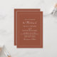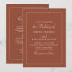 Choose this invitation to set the tone for your wedding with its warm terracotta hues and elegant script font. Elevate your guests' experience by providing them with all the necessary details in a beautifully designed format that mirrors your impeccable taste. Make your wedding day truly memorable by focusing on every detail, starting with this inviting and stylish card.