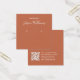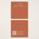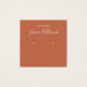 A minimalist terracotta earring display card: just white text on terracotta background, with the erring places indicated by two very small circles. The name is written in an elegant script.