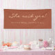 Rustic terracotta bridal shower banner with text in a modern script font, "She said yes." Personalised with the name of the bride-to-be and her shower date.