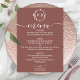 A simple chic foliage faux foil monogram terracotta wedding menu card. Easy to personalise with your details. Modern boho wedding menu card editable, wreaths photo wedding invitation, customisable, calligraphy handwritten font, simple, elegant.