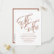 This customisable terracotta wedding invitation postcard brings a perfect blend of rustic elegance and modern convenience. Featuring "Mr. and Mrs." in beautiful rustic calligraphy. Personalise by adding names, date, time, venue and other details.