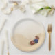 Beautiful earth tone fall wedding paper plate featuring terracotta and navy blue flowers with green leaves . The gold glitter details are simulated. FOR MORE MATCHING PRODUCTS click on the collection above or contact me