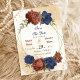 Beautiful earth tone fall save the date invitations featuring terracotta and navy blue flowers with green leaves . The gold glitter details are simulated. FOR MORE MATCHING PRODUCTS click on the collection above or contact me