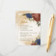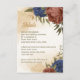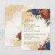 Beautiful earth tone fall wedding enclosure card featuring terracotta and navy blue flowers with green leaves . The gold glitter details are simulated.