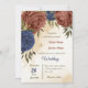 terracotta navy blue floral greenery wedding invitation