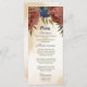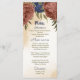 Beautiful earth tone fall wedding menu card featuring terracotta and navy blue flowers with green leaves . The gold glitter details are simulated.