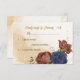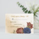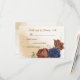 Beautiful earth tone fall wedding response card featuring terracotta and navy blue flowers with green leaves . The gold glitter details are simulated.