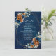 Elegant Navy blue, Terracotta , Orange earthy floral theme wedding details card featuring elegant bouquet of Navy blue, Terracotta colour roses peonies and green eucalyptus leaves. Please contact me for any help in customisation or if you need any other product with this design.